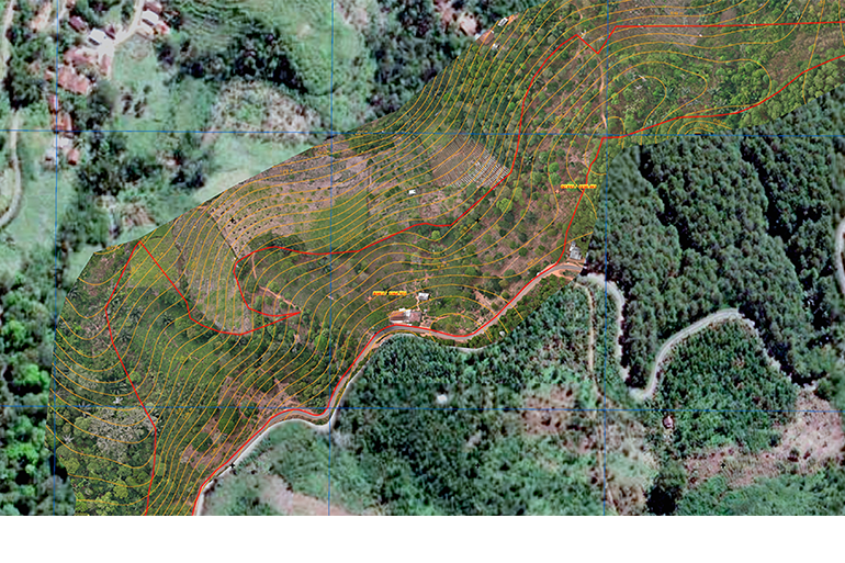 Pada perkebunan dan pertanian, teknologi drone di gunakan untuk memantau area yang luas karena keberhasilan nya dalam fotografi, pemetaaan udara dan pengawasan.